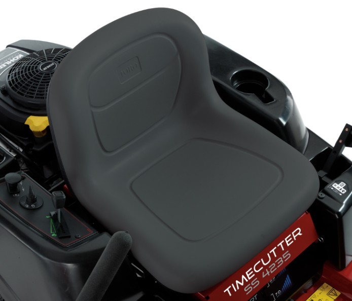 Asiento con respaldo altoCuando tiene que segar durante un tiempo prolongado, no hay nada como un buen asiento. El asiento con respaldo alto de 38,1 cm ofrece el máximo apoyo durante largas sesiones de segado.