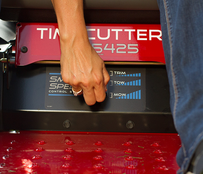 Kit de enganche de serieEL kit de enganche viene de serie en todos los modelos TimeCutter. Es fácil aumentar la versatilidad de su cortacésped de giro cero acoplando un volquete, una desbrozadora, un esparcidor de fertilizante u otro accesorio Brinly Hardy. (Los accesorios se venden por separado. Control Smart Speed® – Perfilar, Remolcar, CortarrEl sistema de control Smart Speed® de Toro le permite elegir entre 3 velocidades de avance para un rendimiento óptimo. Utilice el intervalo PERFILAR de velocidad baja para perfilar más de cerca y ahorrar más tiempo, el intervalo REMOLCAR de velocidad media para remolcar accesorios, o el intervalo SEGAR para segar grandes extensiones abiertas a alta velocidad y acabar más rápidamente.