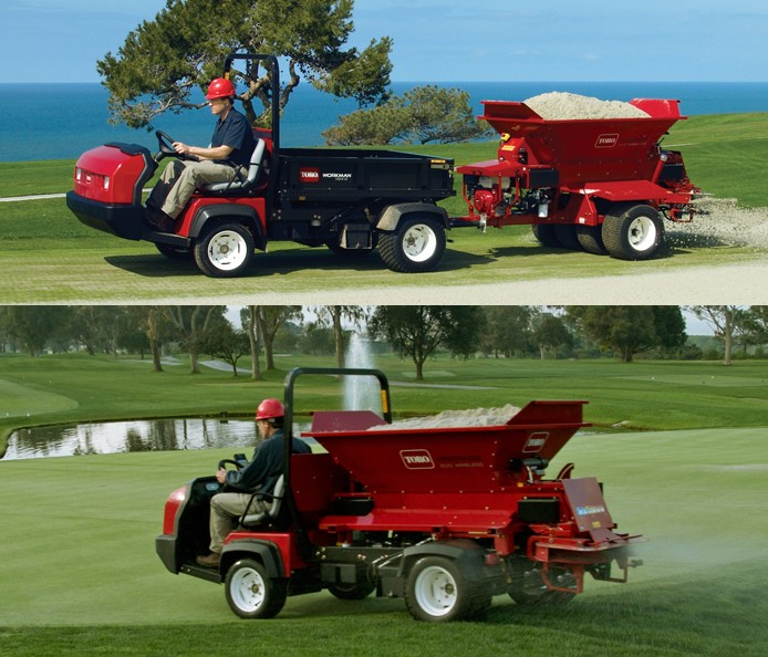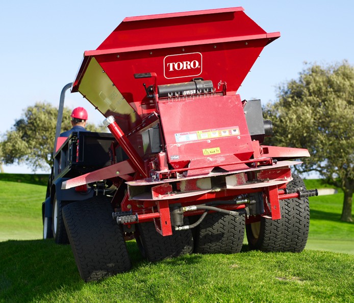 La nueva recebadora centrífuga Toro ProPass™ 200 ofrece patrones de distribución desde ultra-ligero para aplicaciones superficiales, hasta ultra-denso para el llenado de los orificios que deja la aireación, con toda precisión. Disponible en una versión para montar en un vehículo utilitario y una versión remolcada.
