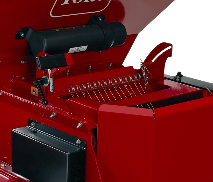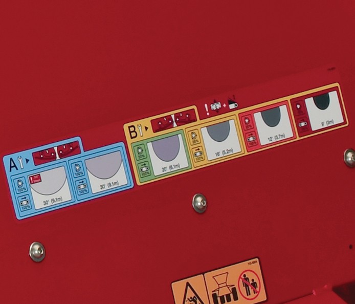 Aplique materiales uniformemente en anchuras de 2,74 m a 10,67 m mediante el sistema patentado de ajuste deslizante de los rotores opcionales. Este exclusivo sistema ajusta el lugar de caída, es decir, el punto en que el material cae sobre los discos del rotor, proporcionando de este modo un patrón uniforme en toda la anchura de trabajo. |