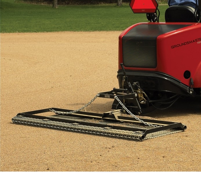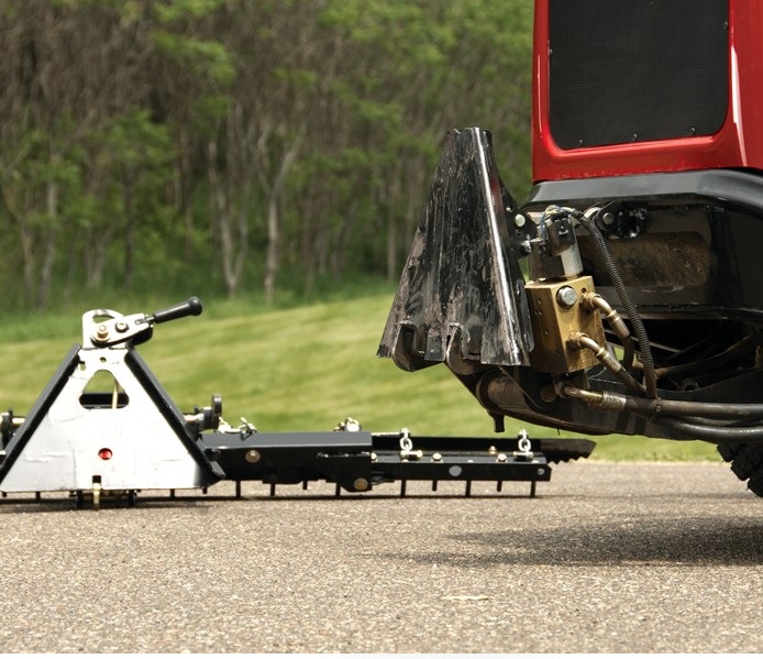 Quick Attach System ™ (QAS)Con el QAS, cualquiera puede cambiar de un accesorio a otro en menos de un minuto, ¡sin necesidad de herramientas! Vuelva a poner sus campos rápidamente en condiciones de juego. Los accesorios incluyen: soplador de escombros, niveladora de acabado, rastrillo de dientes, sistema de soporte de tapete de arrastre, tapete de arrastre de cocoa, tapete de arrastre de acero y escoba de aseo. |
