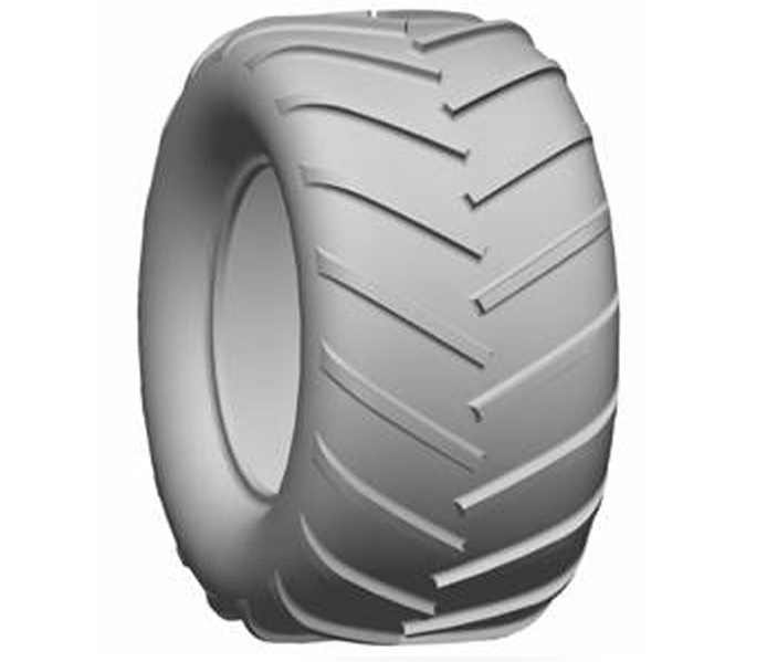 Un neumático con bandas de rodadura con patrón de chevron para su uso en aplicaciones que requieren mayor tracción. |