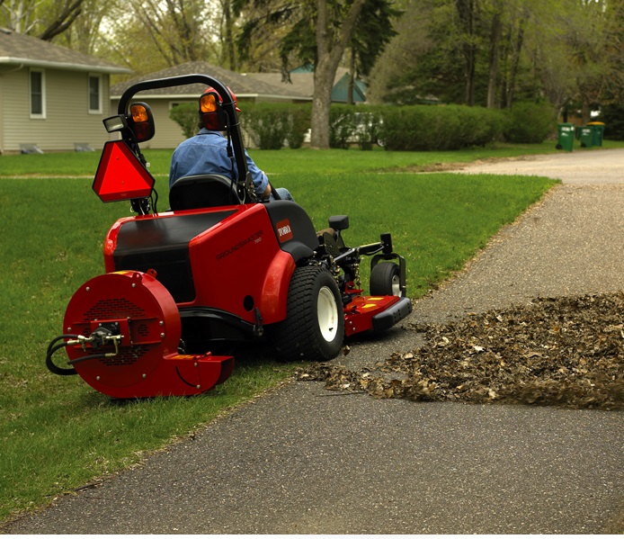 Un ventilador ciclónico de alta potencia diseñado para limpiar rápidamente los escombros de las áreas arregladas y no deseadas. Motor hidráulico, velocidad del ventilador de 2000 rpm: 2700 cfm a 81 mph (76,4 cmm a 130 kph). Se monta en la unidad de tracción a través del sistema QAS trasero. |